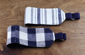 表地はコットンリネン素材のチェックやストライプや、コットン素材のブラックウォッチ柄(どちらも日本製)を、裏地はしっかりとしたチノクロス(日本製)を使いました。
